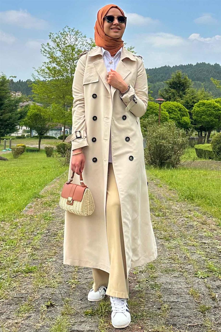Becca Astarlı Trençkot Taş Rengi | TRENÇKOT