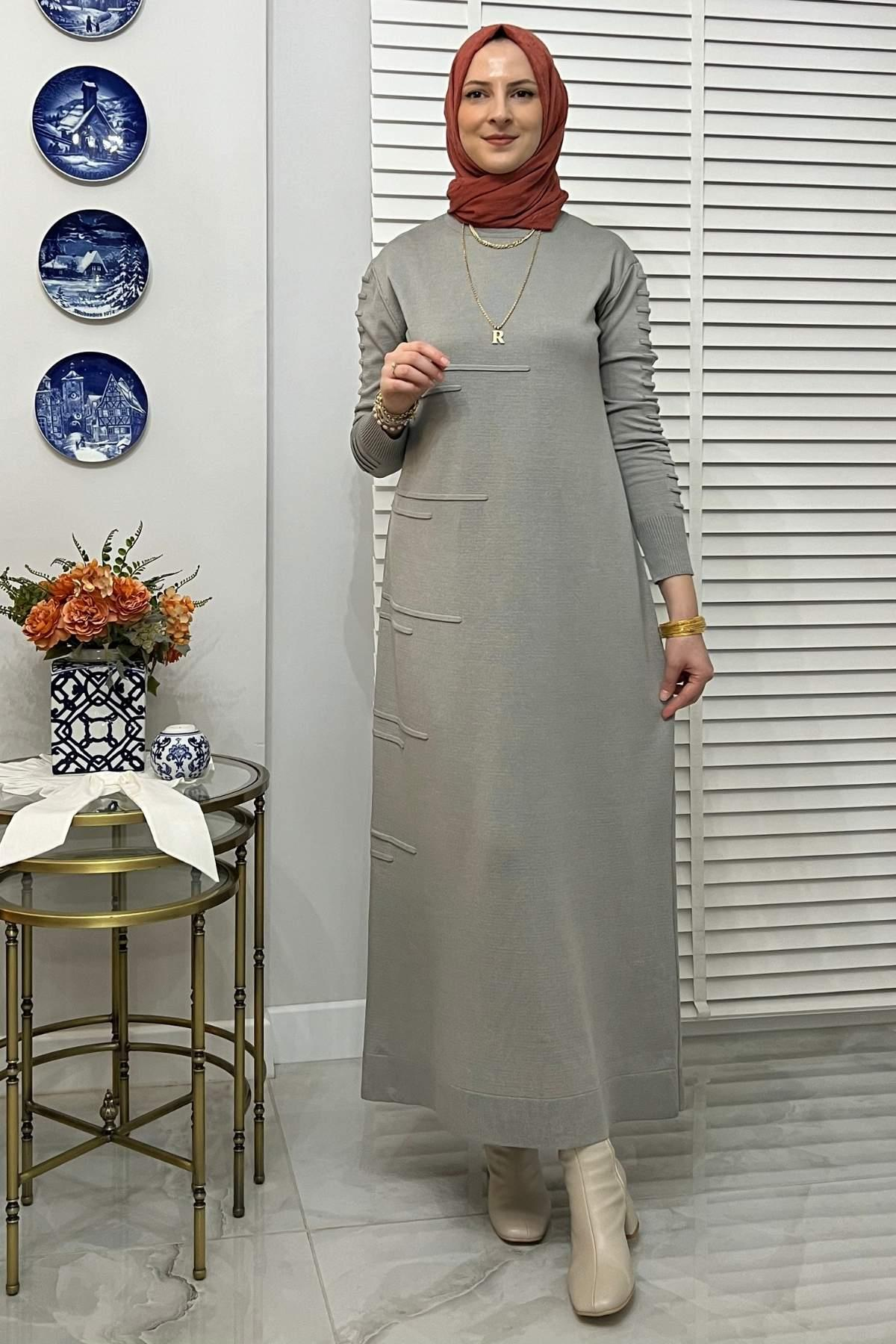 Ölçü Tablosu: Boy: 135 cm (Üretim kaynaklı 5-6 cm. farklılık olabilir.) Göğüs: 114 cm Bel: 118 cm Basen: 122 cm Kol Boyu: 60 cm