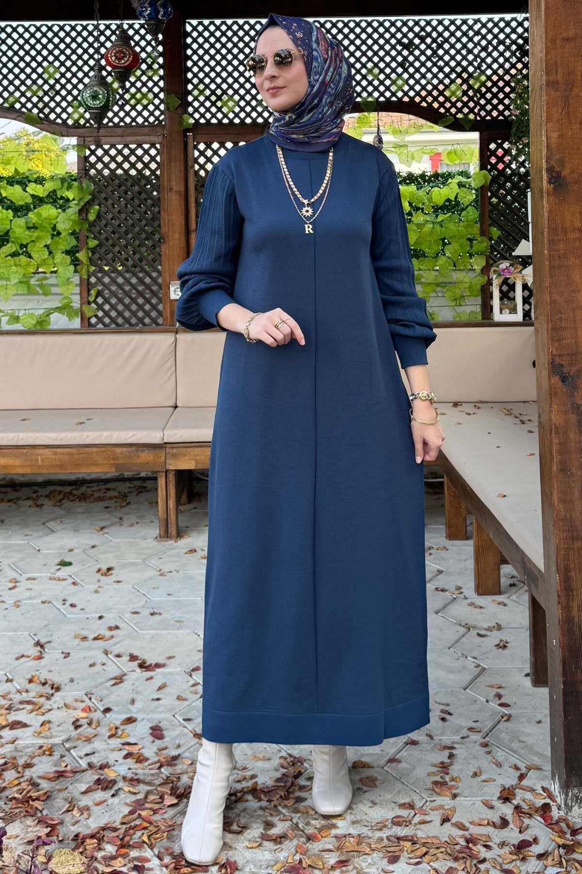 Ecem İndigo Triko Elbise